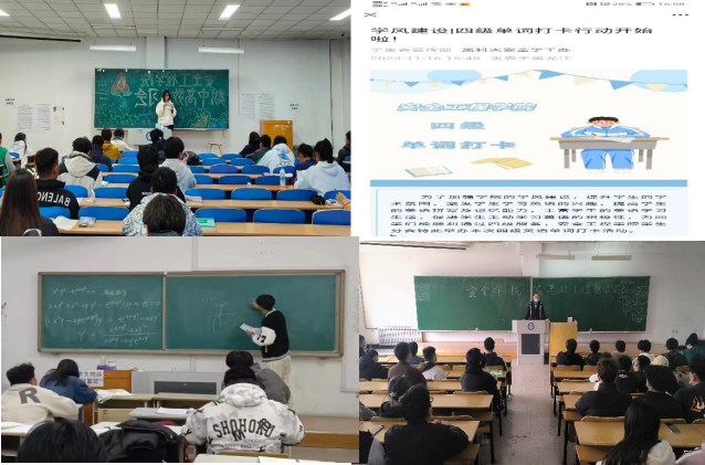 以督导正学风,强化学风建设实效。召开“扬时代新风 树学风新貌”年级大会、“追梦远方 未来可期”主题班会,讲清早、晚自习及课堂要求,端正学生学习态度,提高学生学习积极性;联系任课教师加强课堂管理,增强课堂活跃性,提高学生课堂学习效率;安排学生会学习部和班级学习班长,统计每节课出勤人数(迟到、早退),及时掌握学生动向;举办“太阳澳门集团期中复习会”、“四级单词打卡行动”等活动,构建朋辈互助“学习共同体”;组织班主任深入班级随机听课,掌握本班学生的上课状态,对存在问题的学生及时教育引导。全面提高上课“出勤率”、“抬头率”及“前排就坐率”。